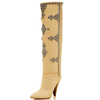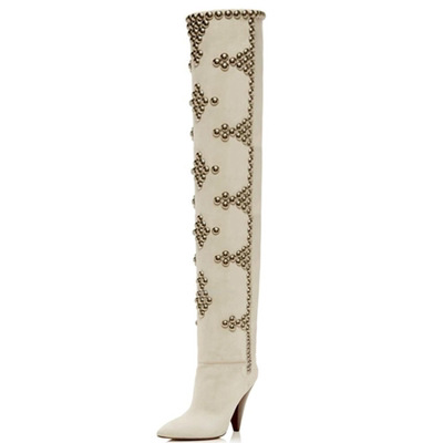 "Studded Wedge Heel Pointed Toe Over-the-Knee Boots"