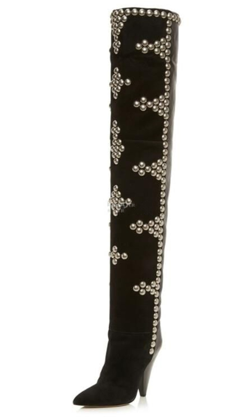 Elevate your style with our Studded Wedge Heel Point Toe Over-the-knee Boots. Crafted from premium cowhide, these boots are the perfect blend of fashion and function. Whether you're dressing up for a night out or adding a chic touch to your everyday look, these boots will make a statement.
